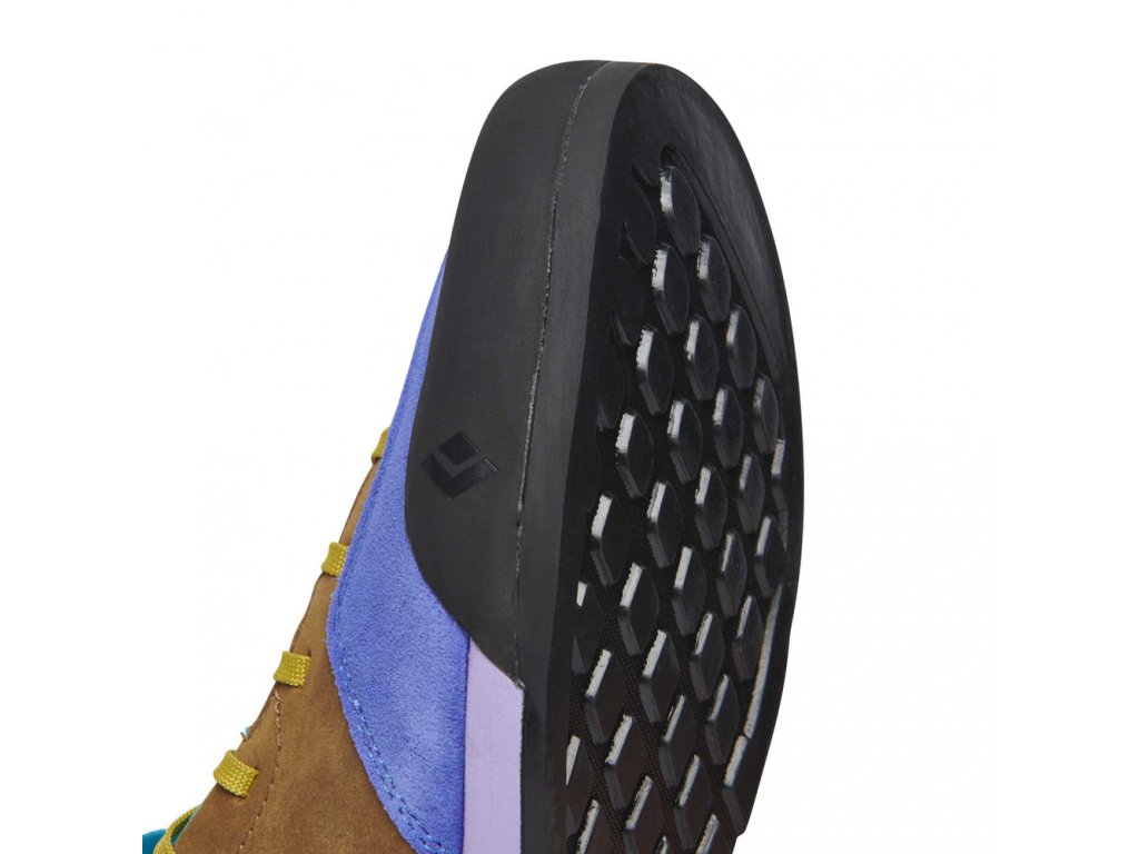 - Tvar špičky a konstrukce svršku inspirovaná konstrukcí lezecké obuvi