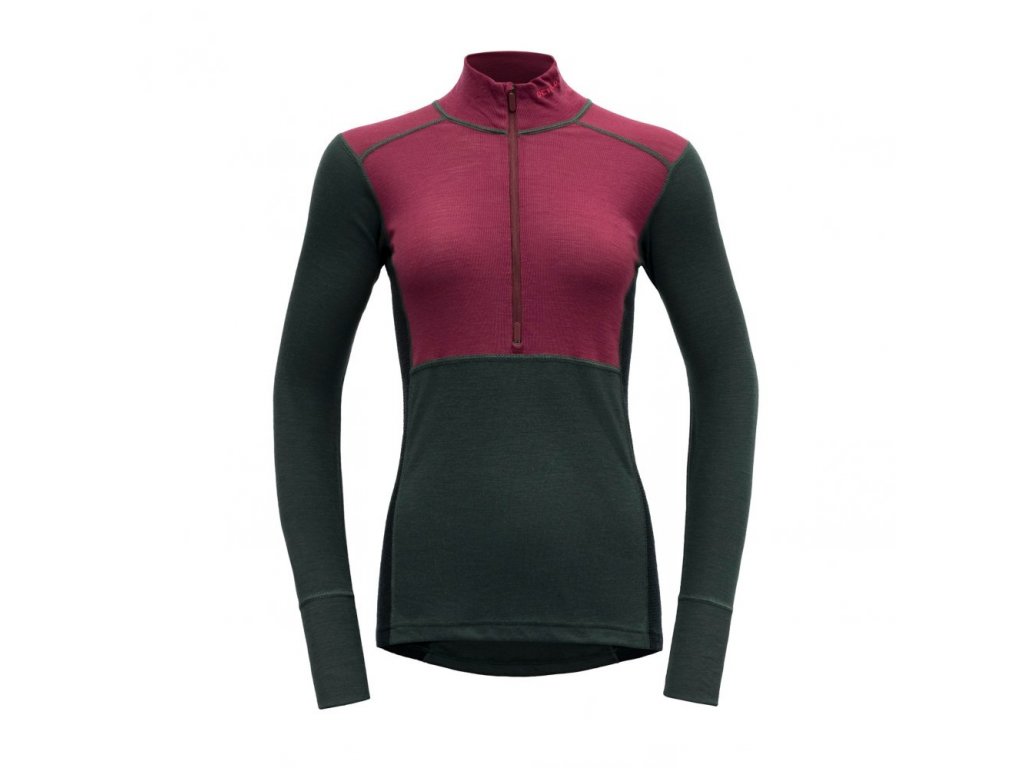 DEVOLD Dámské triko LAUPAREN MERINO ZIP NECK beetroot/woods/ink - fialové/černé