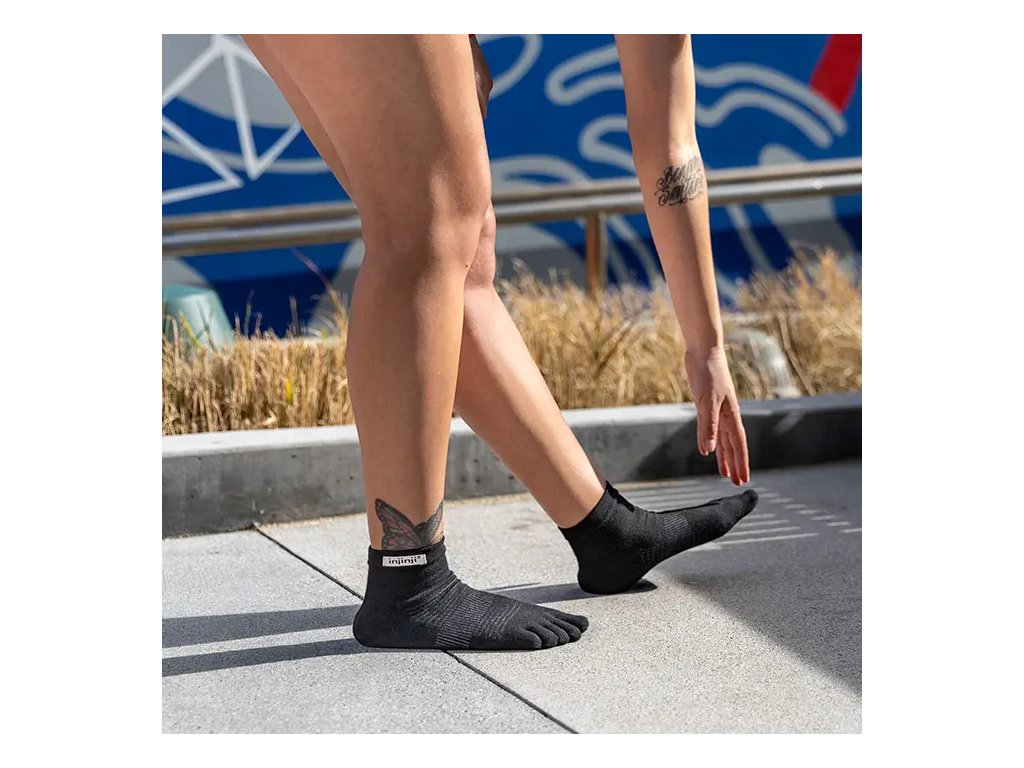INJINJI Prstové ponožky RUN LIGHTWEIGHT MINI-CREW ULTRA-THIN black - černé