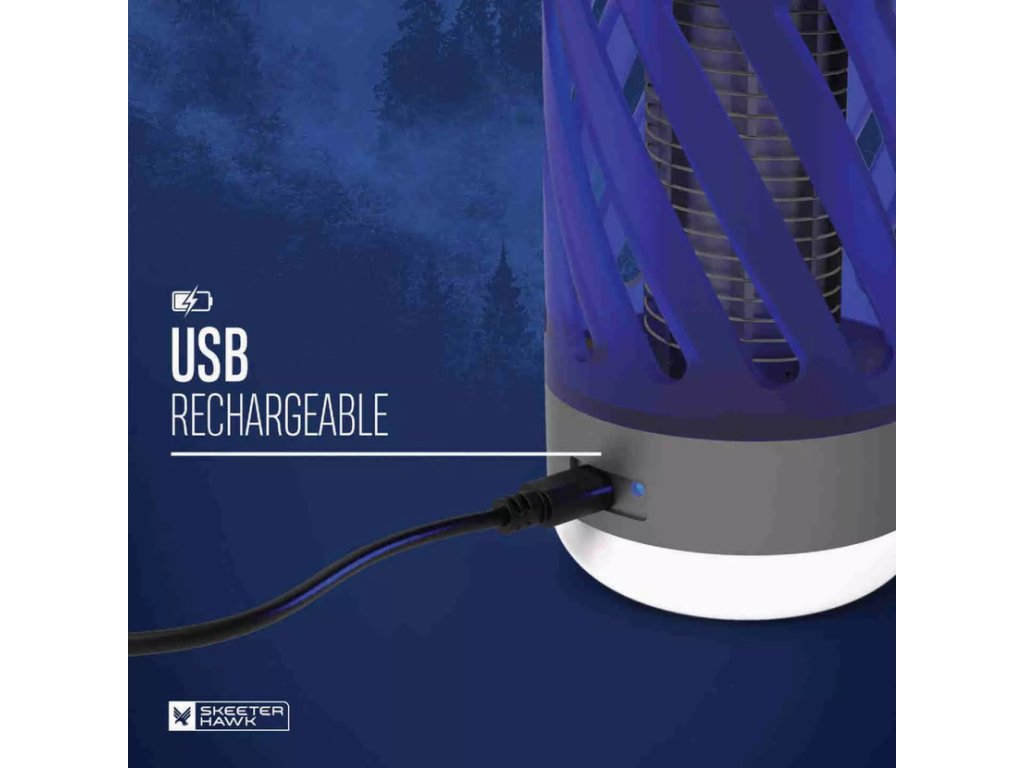 Technologie UV záření přitahuje komáry a další létající hmyz, kde jsou pak zapáleni 360stupňovou elektrickou sítí. Osobní zapper je dobíjecí přes Micro-USB a má svítivost až 100 lumenů. Odolné plastové pouzdro zajišťuje ochranu před pádem až z 1 metru, navíc je svítilna i voděodolná. Díky háku můžete světlo pohodlně zavěsit.
