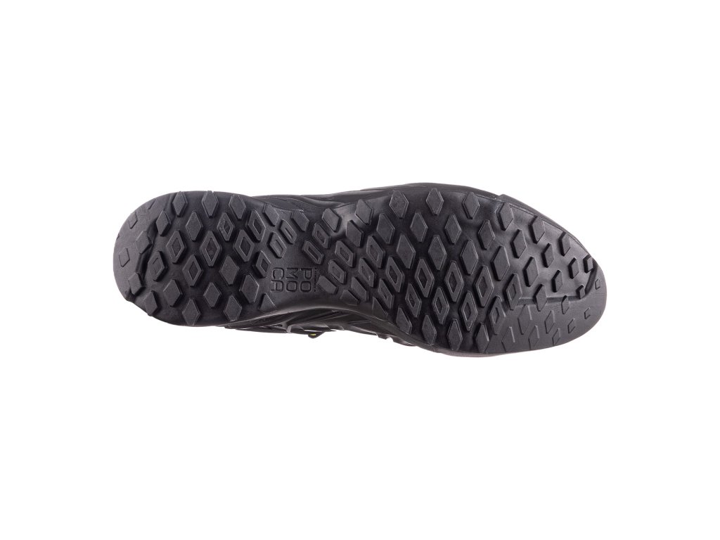 Vysoce přilnavá podešev Pomoca Speed MTN - má výbornou adhézi na hladkých kamenech, v přední části má rovnou plošku pro lezecké výstupy. Zbytek podešve má ostrý dezén pro dobrou trakci při pohybu v měkkém nebo blátivém terénu.